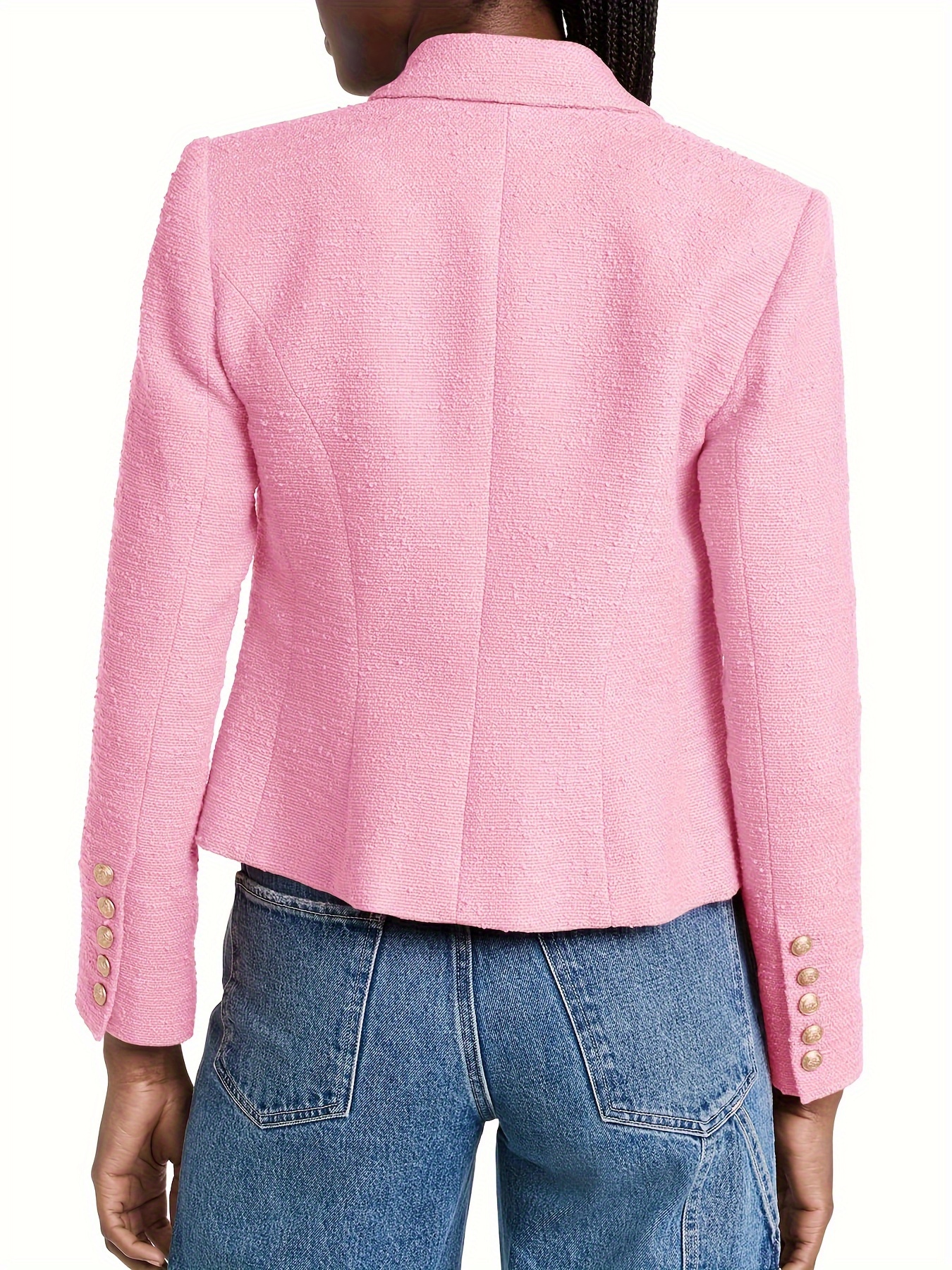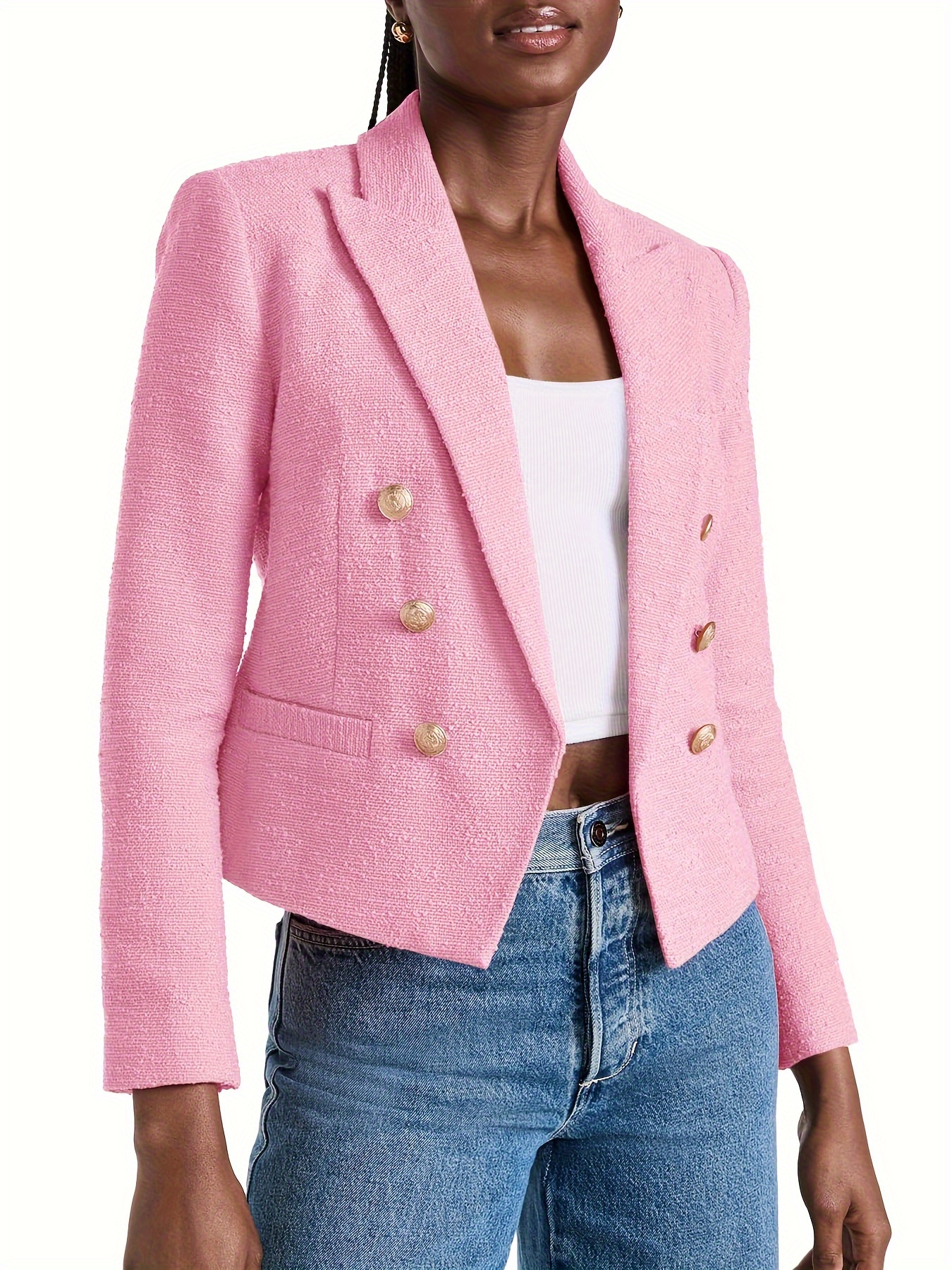 Double Breasted Cropped Blazer, Stylish Lapel Neck Open Front Long Sleeve Business Suit For Spring & Fall, Women's Clothing