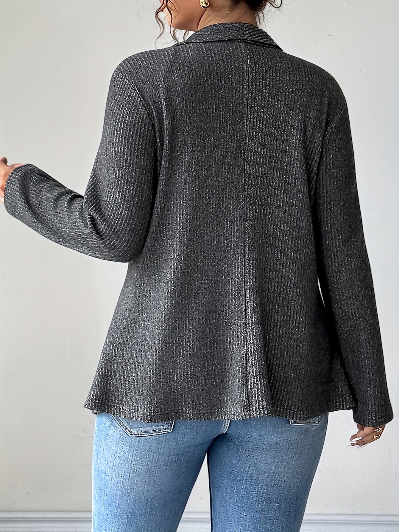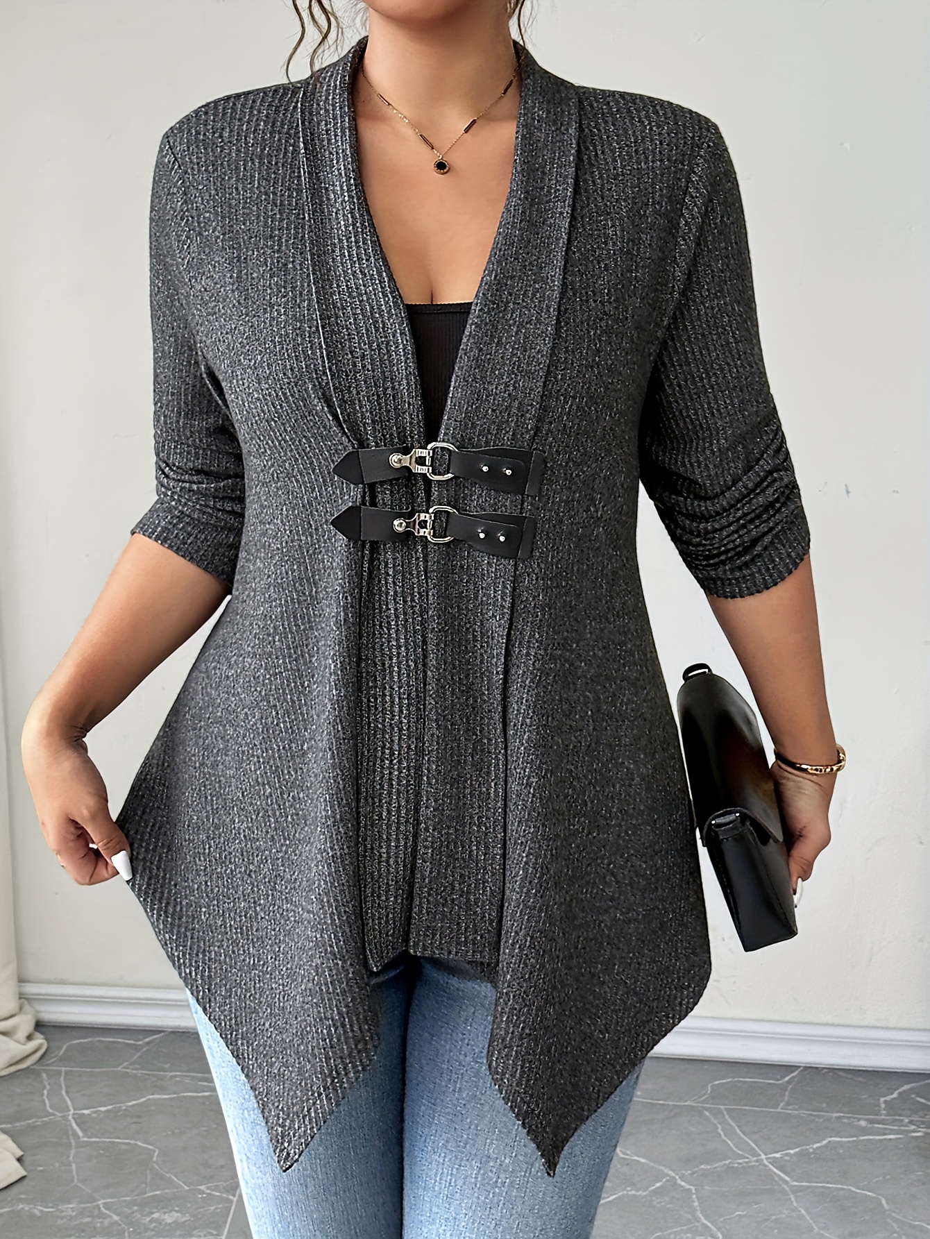 [Plus Size Cardigan] Plus Size - Women's Elegant Casual Cardigan - Long Sleeve, Asymmetrical Hem, Button- Front, Button Closure, Medium Stretch, Solid Color, Perfect for Fall/Winter, Casual Wear Cardigan | Asymmetrical Hemline | Button Closure Coat