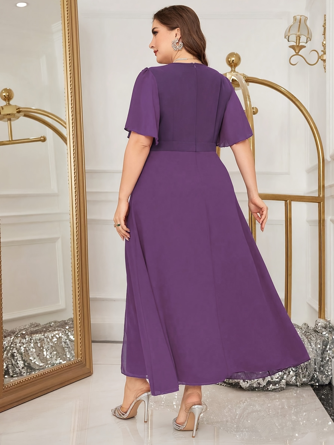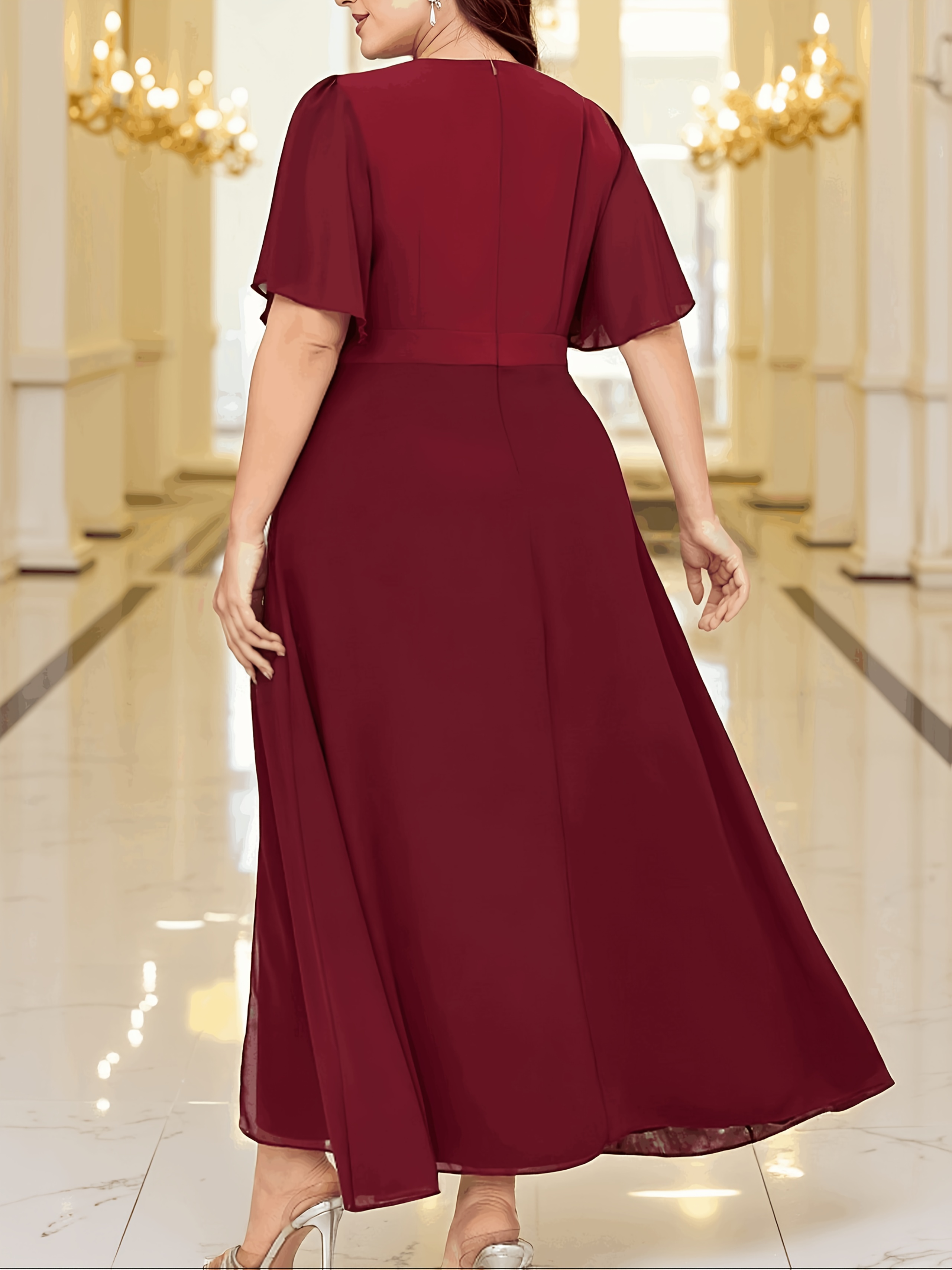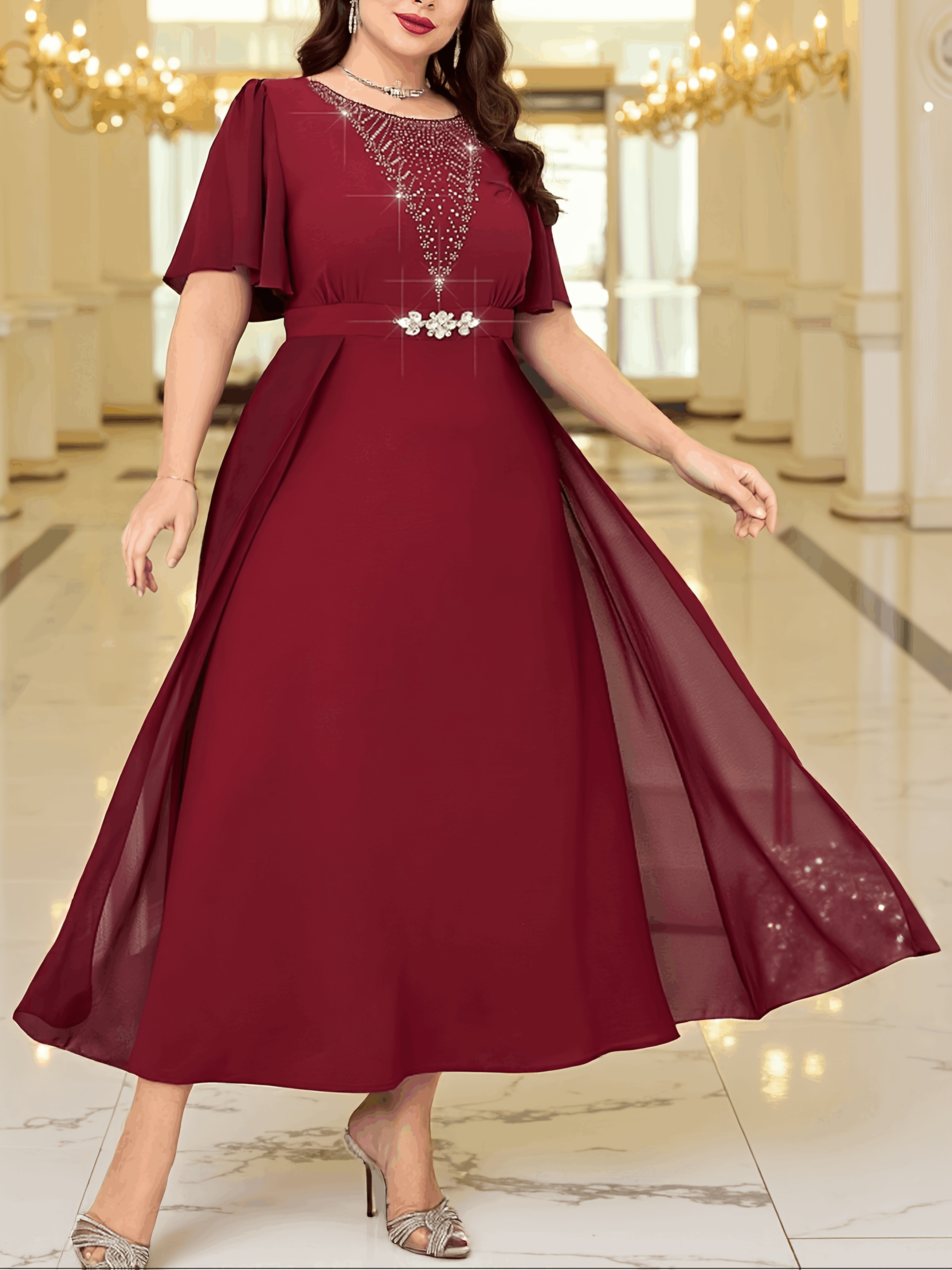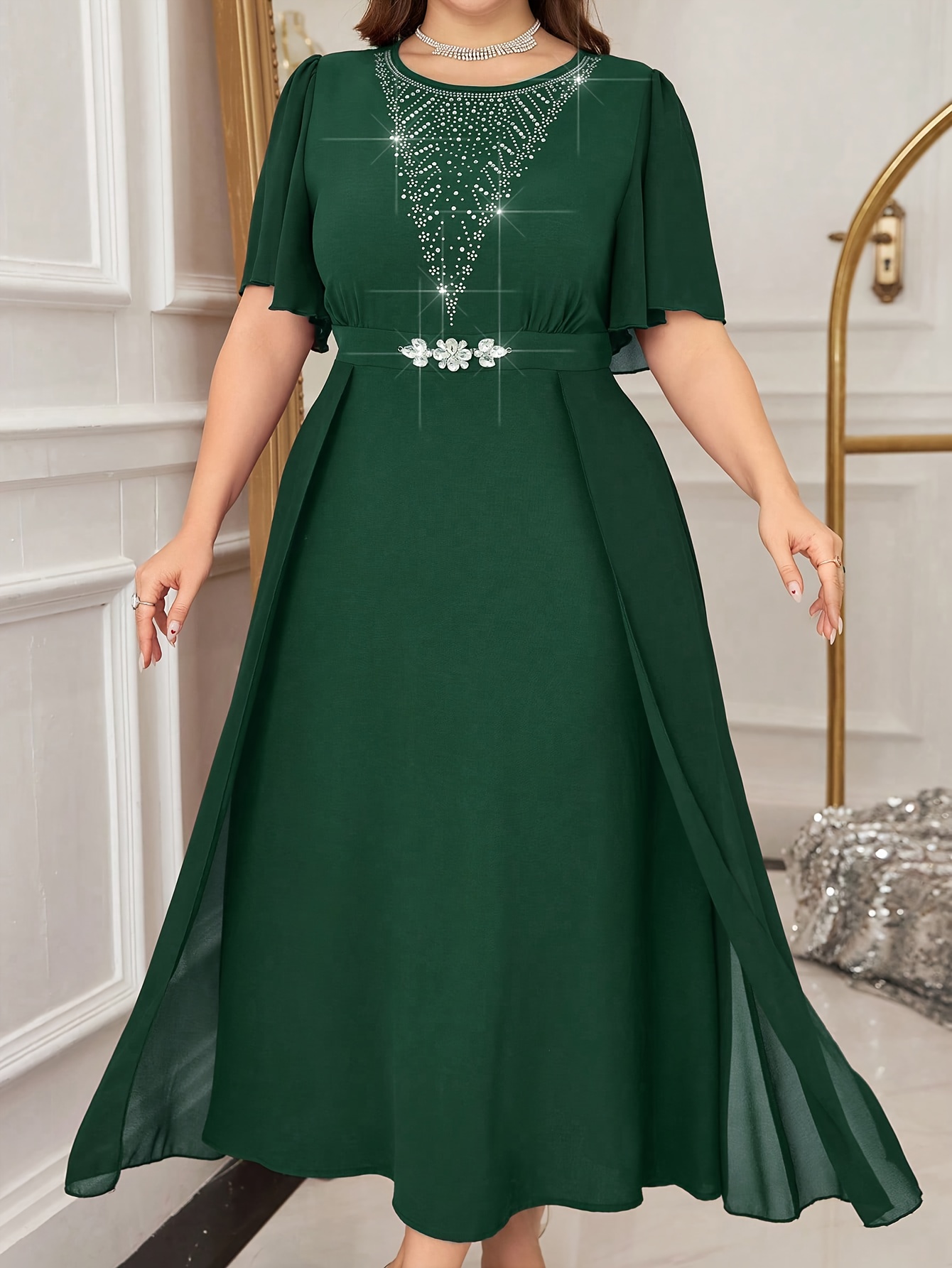 Plus Size - 2025 New Plus-Size Women'S Summer Dress with a Waist-Cinching Design That Flatters The Figure, Elegantly Concealing The Belly, Featuring a Stylish Faux Two-Piece A-Line Silhouette.