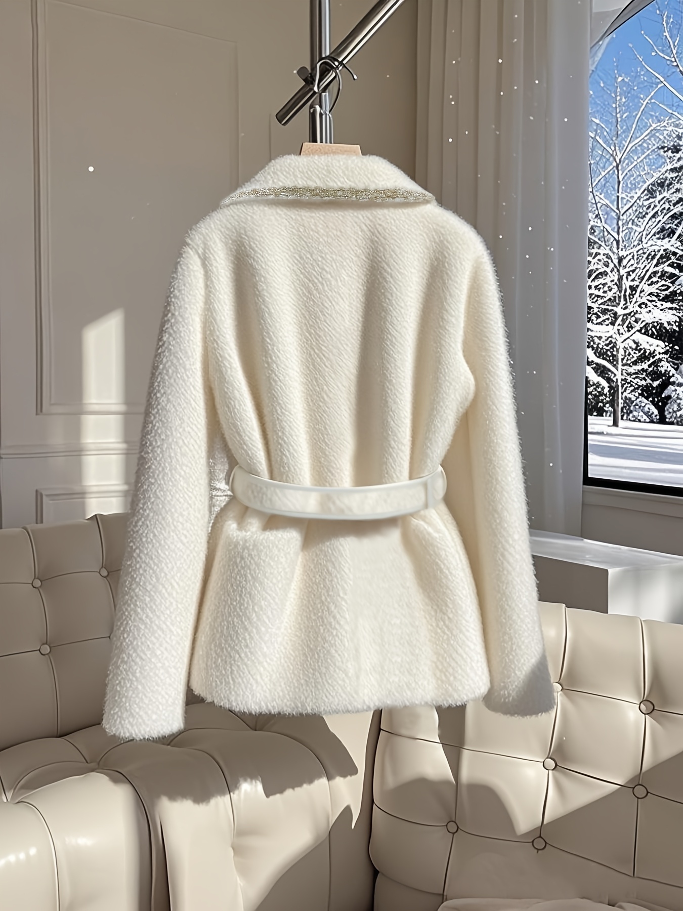 Turn- collar long-sleeve tweed jacket, Women's suit coat