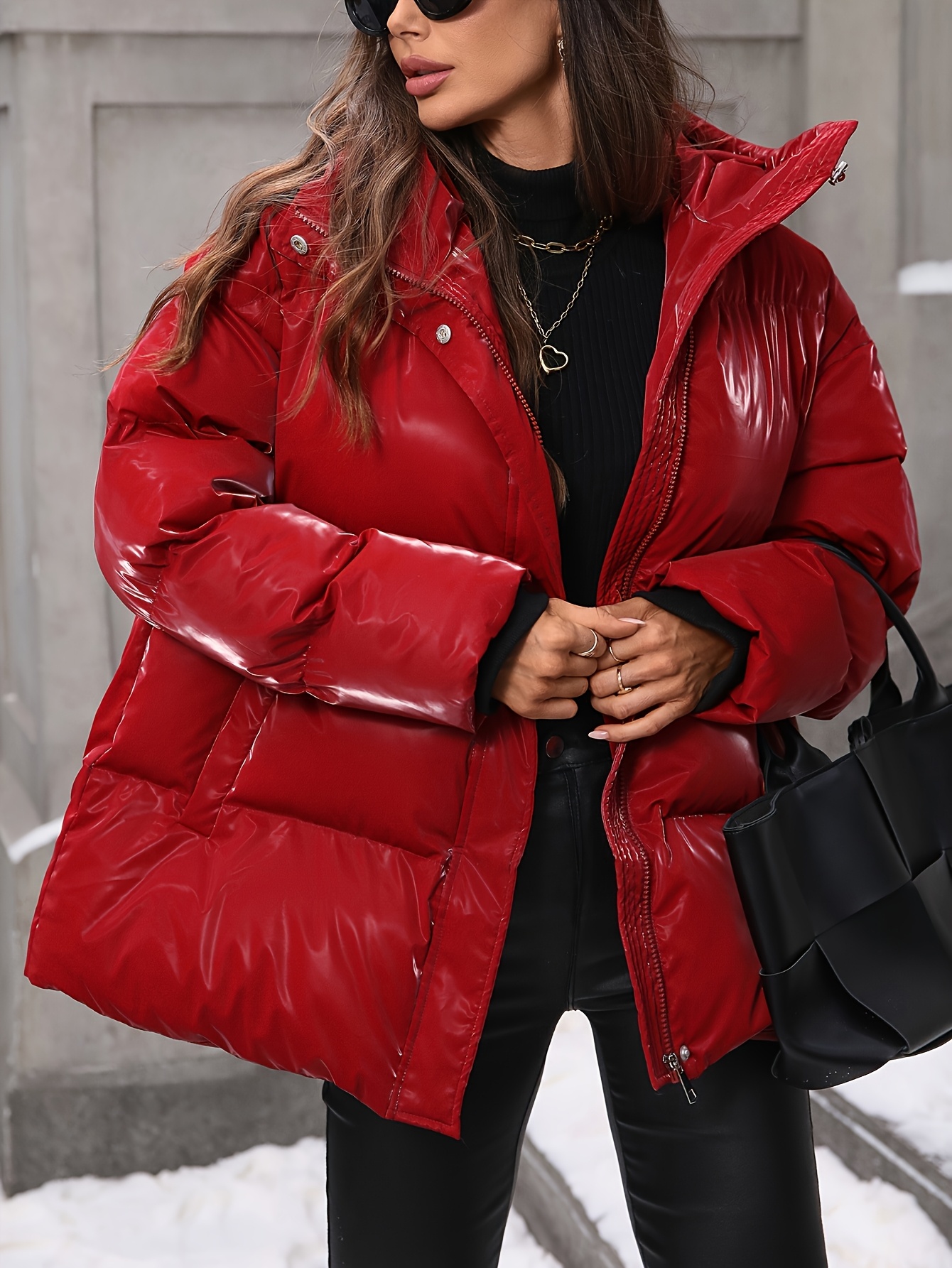 Plus Size - Plus Size Women'S Elegant Hooded Winter Coat - Warm Zip-Up Jacket with Long Sleeves, Solid Color Regular Fit for Cold Weather, Stylish Outdoor & Casual Wear, Winter Coats, Cold Weather Apparel, Sleek Design, Structured Design