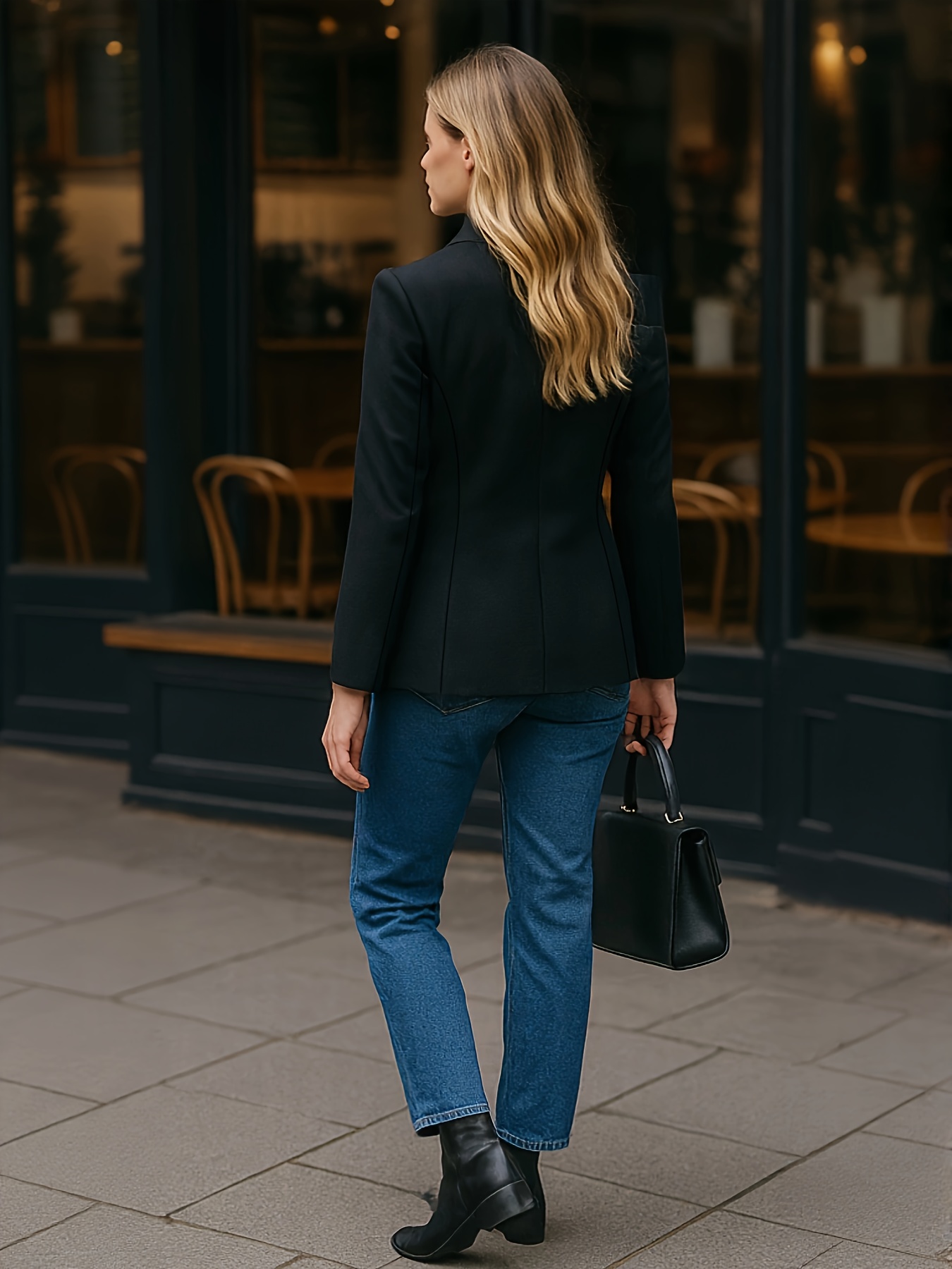 Women's Professional Blazer - Elegant Black & Golden button-front Jacket, Structured H-Silhouette for Office, Formal Events, Everyday - Machine Washable Non-Stretch Blazer Coat